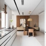 Для большой семьи необходимо создать максимально функциональное пространство. Оптимальным вариантом будет использование острова или полуострова с дополнительной рабочей поверхностью. Такой элемент поможет организовать рабочее место для приготовления пищи или завтраков и станет местом для общения во время готовки.